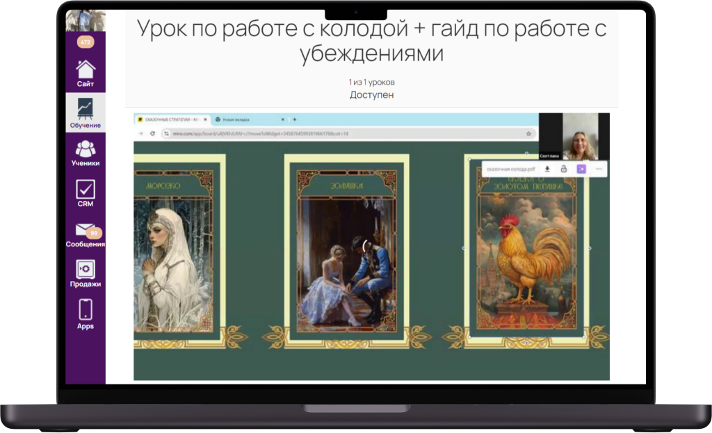 После покупки Вам придет письмо на геткурс с доступом к обучению, а также приглашение в Клуб Ведущих, где Вы сможете найти единомышленников, увидеть нестандартные подходы к использованию колод!